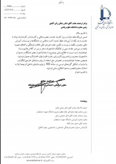 کلاس های دانشگاه فردوسی مشهد، “دخترانه” “پسرانه” شد