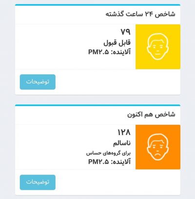با قرار گرفتن شاخص کیفیت هوا بر روی عدد ۱۲۸ هوای شهر تهران برای گروه های حساس ناسالم است