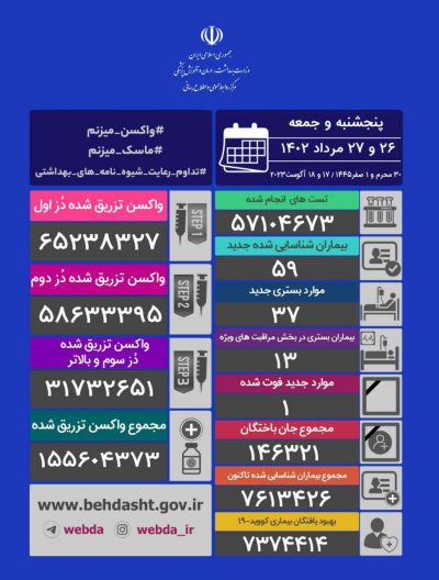 فوت یک بیمار و شناسایی ۵۹ مبتلای جدید کرونا در کشور