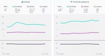 طبق گزارش جدید اسپیدتست، در ماه ژوئیه سرعت اینترنت موبایل ایران از ۳۴.۶۵ مگابایت به ۳۳.۴۴ مگابایت کاهش پیدا کرده و در طرف مقابل سرعت اینترنت ثابت از ۱۱.۸۰ مگ به ۱۲.۱۱ مگابایت برثانیه رسیده!