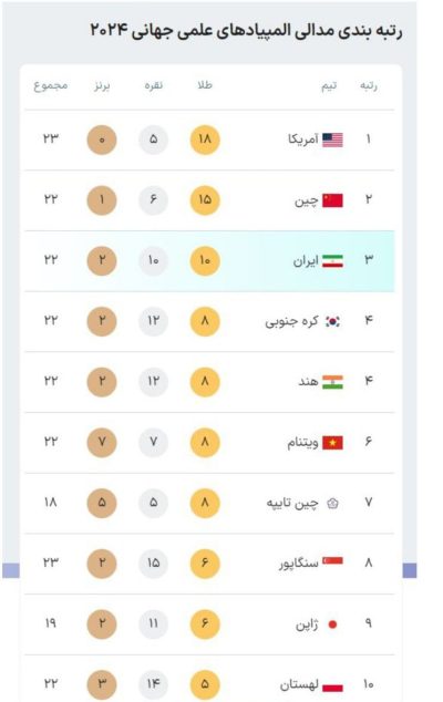🔹با پایان المپیادهای علمی۲۰۲۴، در ۵ المپیاد با بیشترین کشور شرکتکننده (۱ز ۵۳ تا ۱۱۰ کشور) جمهوری اسلامی ایران بعد از کشورهای آمریکا و چین با کسب مجموعا ۱۰ مدال طلا، ۱۰ نقره و ۲ برنز در جایگاه سوم دنیا قرار گرفت. 🔹در سال ۲۰۲۴ دانشپژوهان کشورمان موفق شدند تا رتبه اول المپیاد جهانی نجوم…