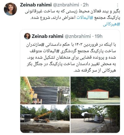 توییت فعال محیط زیست: بگیر و ببند فعالان محیط زیستی که به ساخت غیرقانونی پارکینگ مجتمع الیمالات اعتراض دارند، شروع شده
