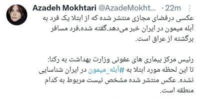 رئیس مرکز بیماری های عفونی وزارت بهداشت: 🔹تا این لحظه مورد ابتلا به آبله میمون در ایران شناسایی نشده. عکس منتشر شده مشخص نیست مربوط به کدام منطقه است.