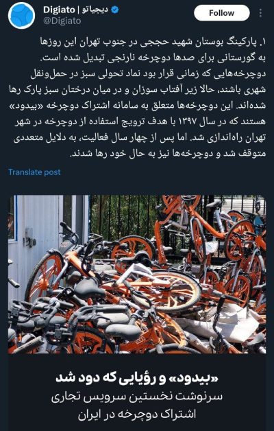 🔹سرنوشت غمانگیز اولین سرویس دوچرخه اشتراکی در تهران!