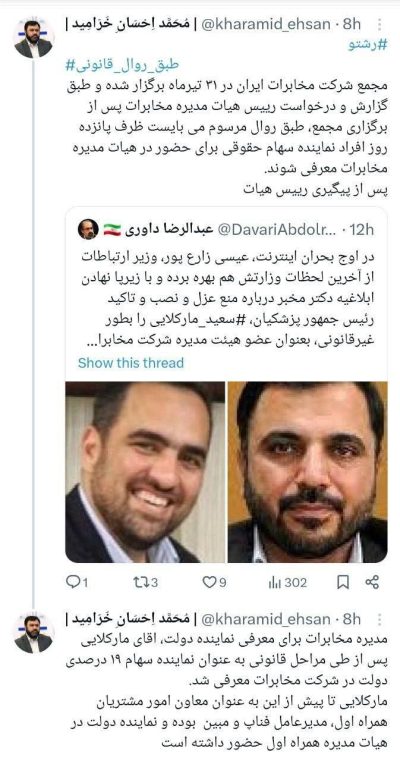 🔹واکنش وزارت ارتباطات به حواشی انتصاب نماینده مخابرات