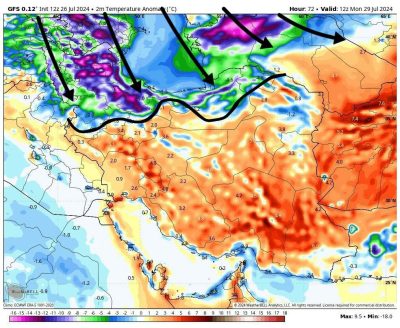 🔹امروز شاهد نفوذ جبهه هوای سرد به نیمه شمالی کشور هستیم این هوای خنک تا سه شنبه ماندگار خواهد بود.