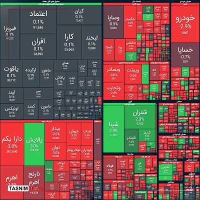 شاخص کل بورس با ریزش ۲۴ هزار واحدی در پایان معاملات امروز به ۳ میلیون و ۰۹۱ هزار واحد رسید. شاخص کل بورس با ریزش ۲۴ هزار واحدی در پایان معاملات امروز به ۳ میلیون و ۰۹۱ هزار واحد رسید. شاخص کل هم (وزن): ۸ هزار واحد مثبت ارزش معاملات: ۱۲۳۸۰۰ میلیارد تومان