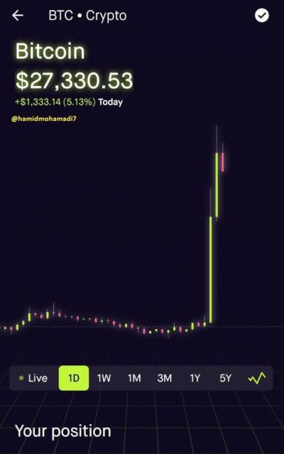 قیمت ها در بازار کریپتو در حال پرواز هستند. بیت کوین تا این لحظه ضمن ثبت افزایش قیمت 1339 دلاری به 27 هزار و 331 دلار رسیده است. (رشد بیش از 5 درصدی قیمت)