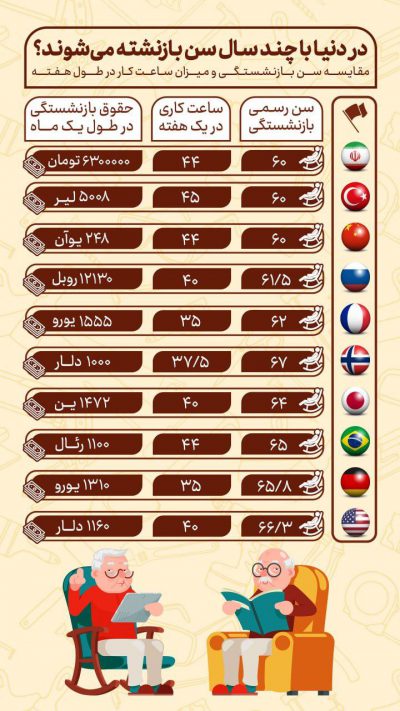 چهارم شهریور، روز کارمند 🔹 نگاهی اجمالی به سن بازنشستگی و مقایسه آن با میزان ساعات کاری در طول هفته با دیگر گشورها