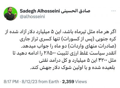 هشدار یک اقتصاددان در باره سیاستهای ارزی/ سیاست ارز ۲۸۵۰۰ تومانی را اصلاح نکنید، با اولین شوک دلار جهش میکند 🔹اگر هر ماه مثل تیرماه باشد، این ۵ میلیارد دلار آزاد شده از کرهجنوبی (پس از کسورات) تنها کسری تجاری (صادرات منهای واردات) دو ماه را جواب میدهد. 🔹آنقدر سیاست غلط ارزی ۲۸ هزار و…
