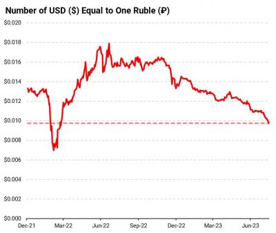 . یک روبل اکنون کمتر از یک سنت آمریکا ارزش دارد.