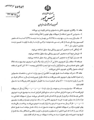 🔹بر اساس این آییننامه وزارت صنعت، معدن و تجارت مکلف است با معرفی بنیاد شهید و امور ایثارگران به جانبازان ۵۰ درصد و بالاتر که در سنوات گذشته از تسهیلات موضوع ماده (۴۵) قانون جامع خدمات رسانی به ایثارگران سال ۸۶ استفاده نکردهاند، مجوز واردات یک دستگاه خودرو متناسب با وضعیت جانبازی ایثارگر را با…