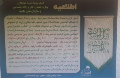 عبدالرضا داوری در حساب کاربری خود در توییتر با انتشار اطلاعیه ای مربوط به وزارت تعاون، کار و رفاه اجتماعی درخصوص امتیازات سفر اربعین برای کارکنان این وزارتخانه و سازمانهای تابعه نوشت: 🔹به پرسنل وزارت رفاه و سازمانهایش، ۳ روز مرخصی تشویقی، ۵ میلیون تومان کمک هزینه و یک میلیون تومان برای هریک از اعضای…