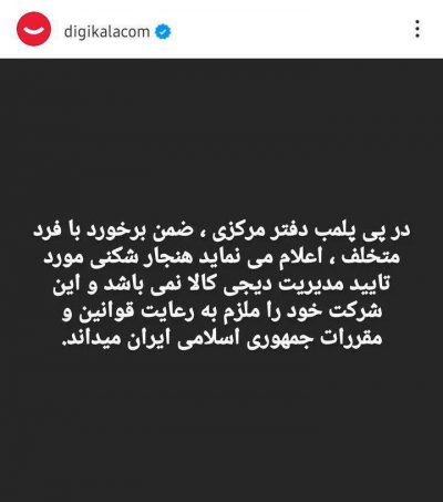 🔹گفته می شود دیجی کالا به دنبال انتشار این پست، رفع پلمب شده است.