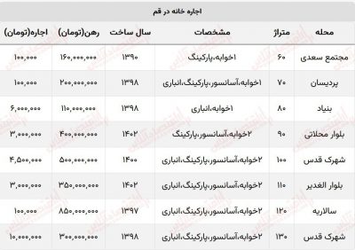 حداقل بودجه مورد نیاز برای اجاره خانه در قم چقدر است؟ / از رهن ۱۶۰ میلیونی تا اجاره ۱۰ میلیونی