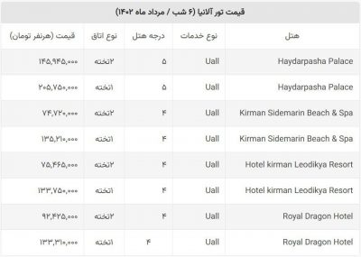 قیمتهای فضایی تور آلانیا ترکیه؛ ۱۴۵ میلیون فقط برای ۶ شب!/ جدول قیمت تور آنالیا