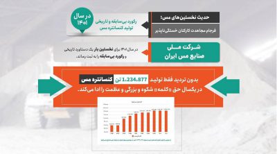 📈 دستاوردی تاریخی و رکوردی بیسابقه در تولید یک میلیون و ۲۳۴ هزار و ۸۷۷ تن کنسانتره مس از زمان تاسیس شرکت ملی صنایع مس ایران تا به امروز