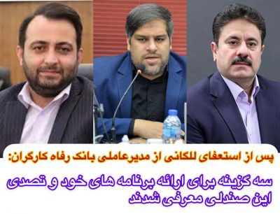 🔹پس از استعفای اسماعیل للگانی از مدیرعاملی بانک رفاه سه گزینه برای ارائه برنامه های خود و تصدی این صندلی معرفی شدند. ۱- محسن سیفی کفشگری عضو هیات مدیره بانک صادرات ۲- حمیدرضا فتحی بیرانوند عضو و قائم مقام بانک رفاه کارگران ۳-هادی آقابابایی معاون بانک صادرات/