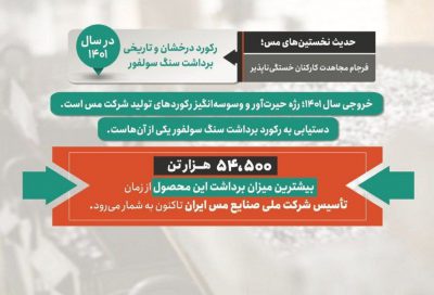 📈رکورد درخشان و تاریخی برداشت سنگ سولفور از بدو تأسیس شرکت ملی صنایع مس ایران به میزان ۵۴ میلیون و ۵۰۰ هزار تن
