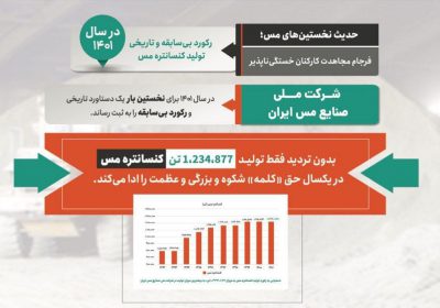 📈رکورد بیسابقه و تاریخی تولید کنسانتره مس برای نخستینبار از بدو تأسیس شرکت ملی صنایع مس ایران به میزان یک میلیون و ۲۳۴ هزارو ۸۷۷ تن