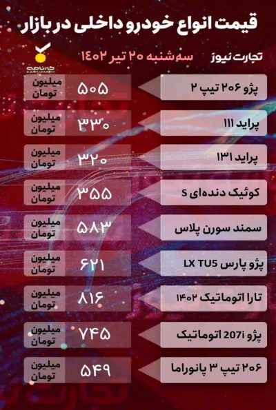 🔹قیمت خودرو امروز ۲۰ تیر ماه در اغلب محصولات کاهشی گزارش شد. در این میان بودند خودروهایی که افزایش اندک و یا ثبات قیمتی را تجربه کردند.