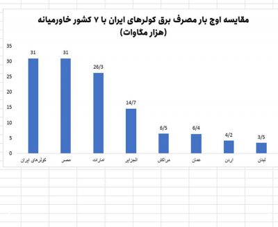 🔹کولرها در ایران بیش از حداکثر مصرف همه مشترکان در ۷ کشور غرب آسیا برق مصرف میکنند و ۴۷ درصدِ مصرف برق در اوج بار مرتبط با وسایل سرمایشی است. 🔹کارشناسان فناوری قدیمی وسایل سرمایشی و بیتوجهی مصرفکنندگان به دمای آسایش را ۲ عامل مصرف نجومی وسایل سرمایشی به حساب میآورند. 🔹امروز مصرف برق کشور…