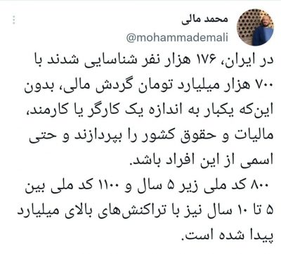🔹 ۸۰۰ کد ملی زیر ۵ سال و ۱۱۰۰ کد ملی بین ۵ تا ۱۰ سال نیز با تراکنشهای بالای میلیارد پیدا شده است.