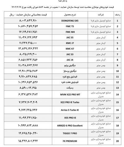 🔹شورای رقابت در جلسه شماره ۵۸۴ خود که روز گذشته برگزار شد، قیمتهای جدید ۲۸ خودروی مونتاژی را اعلام کرد.