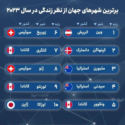 رکورد ۱۵ ساله زیستپذیرترین شهرهای دنیا شکست 🔹نمرهدهی به شاخصهای زندگی مطلوب شهری نتایجی را در پی داشته که در ۱۵ سال اخیر بیسابقه بوده است. (در اصطلاح علمی شهرسازی از عنوان زیستپذیرترین شهرهای جهان استفاده میشود.) 🔹بر اساس نشانگرهای متعدد، وین (پایتخت اتریش) برای دومین سال متوالی جایگاه نخست مناسبترین شهر جهان برای زندگی…