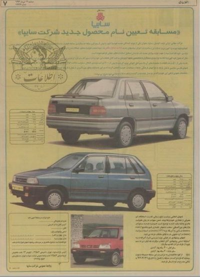 🔹شرکت خودروسازی سایپا در آغاز تولید پراید از مردم خواست که در مسابقه انتخاب نام ایرانی این خودرو در یک مسابقه شرکت کنند. 🔹روزنامه اطلاعات ۱۴ تیر ۱۳۷۲ آگهی منتشر کرد که در آن ضمن اعلام مشخصات ظاهری و فنی خودروی پراید از مردم خواسته شده بود که نامی ایرانی برای آن انتخاب کنند. برای…