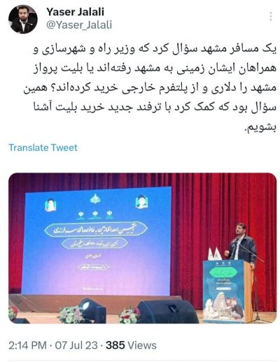سوال یک فعال رسانه از وزیر راه: بلیط هواپیما را چگونه تهیه کردید؟