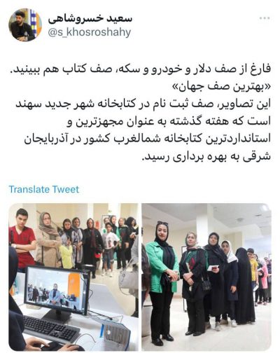 این تصاویر، صف ثبت نام در کتابخانه شهر جدید سهند است که هفته گذشته به عنوان مجهزترین و استانداردترین کتابخانه شمالغرب کشور در آذربایجان شرقی به بهره برداری رسید.