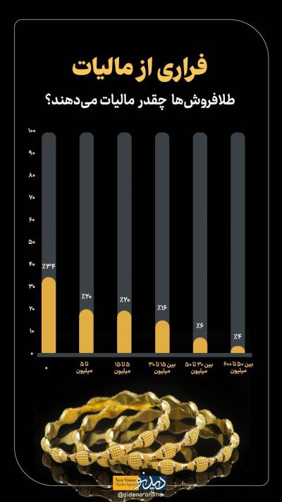 🔹آمار عجیب مالیات طلافروشیها / ۵۴ درصد طلافروشها فقط ماهی ۰ تا ۴۰۰ هزار تومان مالیات میدهند!