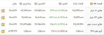 نرخ طلا و سکه صبح امروز با کاهش قیمتها در بازار نمایان شده بود، اما تا عصر قیمت تنها سکه بهار آزادی و گرمی کاهشی و قیمت طلا و دلار صعودی شد. نرخ طلا و سکه صبح امروز با کاهش قیمتها در بازار نمایان شده بود، اما تا عصر قیمت تنها سکه بهار آزادی و…