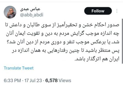عباس عبدی: صدور احکام تحقیرآمیز از سوی طالبان و داعش تا چه اندازه موجب گرایش مردم به دین شده؟