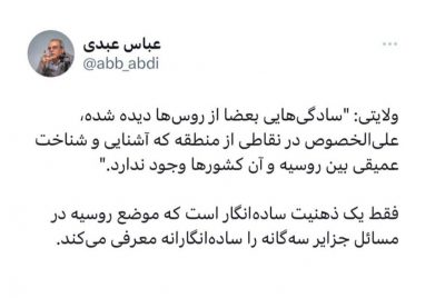 🔹روزنامه جمهوری اسلامی با انتقاد از علی اکبر ولایتی، اظهارات او درباره اقدام روسیه به مشارکت در بیانیه نشست شورای همکاری خلیج فارس با این کشور را زیر سوال برد. در ستون «صرفا جهت اطلاع» شماره امروز روزنامه جمهوری اسلامی، با اشاره به حواشی اخیر روس ها درباره ۳ جزیره ایرانی، آمده است: 🔹عجیب تریـن…