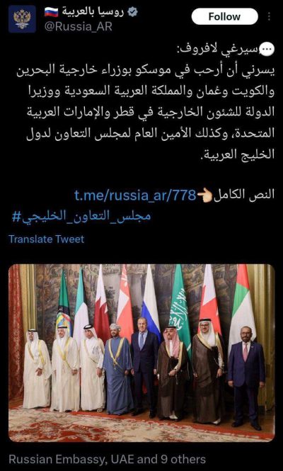 اکانت رسمی وزارت خارجه روسیه، از نام جعلی “خلیج” برای “خلیج همیشه فارس” استفاده کرد.