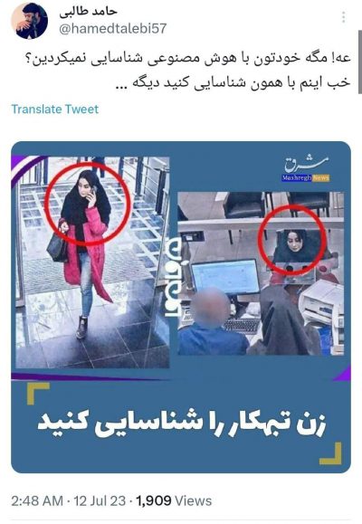 کنایه فعال رسانه ای به مسئله برخورد با بیحجابی: مگه خودتون با هوش مصنوعی شناسایی نمیکردین!