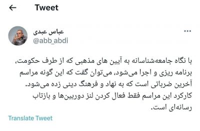 تحلیل متفاوت عباس عبدی از آیینهای مذهبی که حکومت برنامهریزی میکند عباس عبدی نوشت: آیینهای مذهبی که از طرف حکومت، برنامه ریزی و اجرا میشود، آخرین ضرباتی است که به نهاد و فرهنگ دینی زده میشود عباس عبدی، تحلیلگر سیاسی اجتماعی در توییتی نوشت: با نگاه جامعهشناسانه به آیینهای مذهبی که از طرف حکومت، برنامه…