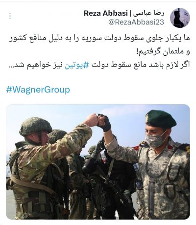 رضا عباسی فعال رسانه ای اصولگرا نوشت: 🔹ما یکبار جلوی سقوط دولت سوریه را به دلیل منافع کشور و ملتمان گرفتیم! اگر لازم باشد مانع سقوط دولت پوتین نیز خواهیم شد…