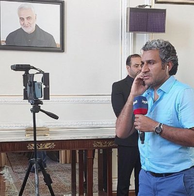 سالن نشست خبری وزرای خارجه ایران و عربستان بهخاطر وجود تصویری از شهید حاج قاسم سلیمانی تغییر کرد/