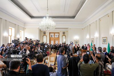 دو تصویر ایرنا از تفاوت محل اولیه و ثانویه نشست خبری وزرای خارجه ایران و عربستان