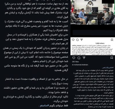🔹قاضی شهریاری در پستی اینستاگرامی خطاب به یکتا ناصر نوشت: دست به انتشار پست دروغ زدید، عکسها هم در حضور شما گرفته شد، در جلسه دو همکار بنده و پدر شما و آقای هادی حضور داشتند و شاهد بودند، فقط میتوانم بگویم متاسفم…