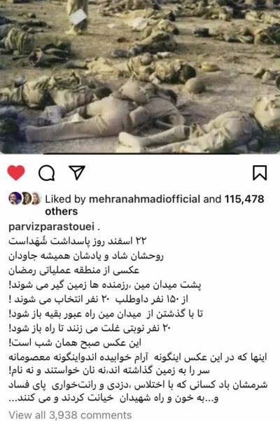 پرویز پرستویی به مناسبت روز شهدا: شرم بر کسانی که با دزدی و فساد به خون شهدا خیانت کردند و میکنند