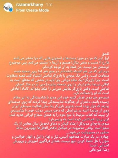 🔹یک مقام دولتی چرا باید در جشنی که متعلق است به اهالی سینما دخترانش را روی صحنه بیاورد؟ 🔹او در حال اجرای نمایش است. وقتی بازیگر نمایش متنش را غلط بخواند، کاملا اخلاقی است که او را شماتت کرد. 🔹فرض کنیم مدیر با شایستگی به این مقام رسیده باشد، دختران او چه گونه شایستگی پیدا…