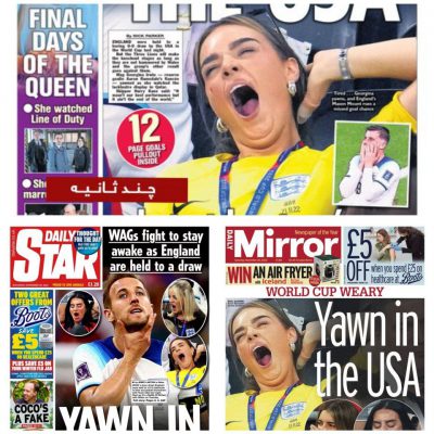 جنجال جدید در انگلیس: خمیازه همسران بازیکنان! 🔹بسیاری از کارشناسان و فوتبال دوستان از سبک بازی تیم گرت ساوتگیت و عدم توانایی این تیم در خلق موقعیت در این بازی انتقاد کردند اما بحثی که هنوز درباره این بازی در نشریات انگلیسی ادامه دارد مربوط به رفتار همسران بازیکنان این تیم است. 🔹چندین روزنامه انگلیسی…