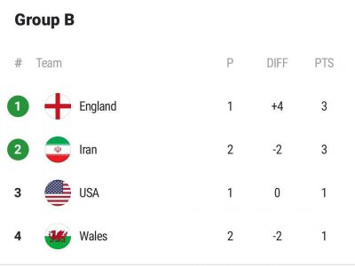 وضعیت جدول گروه B جام جهانی در پایان بازی ولز و ایران و بدون احتساب دیدار امشب انگلیس و آمریکا