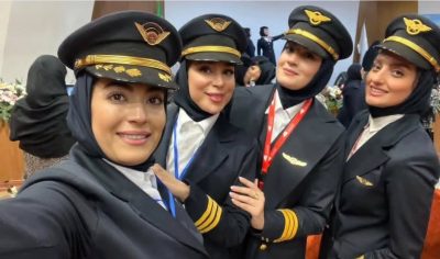 از سمت راست: خلبان دوم ها نسیم طاهریان(قشم ایر) الیکا کشاورز(قشم ایر) سیمین طاهری (زاگرس) و خلبان نشاط جهانداری